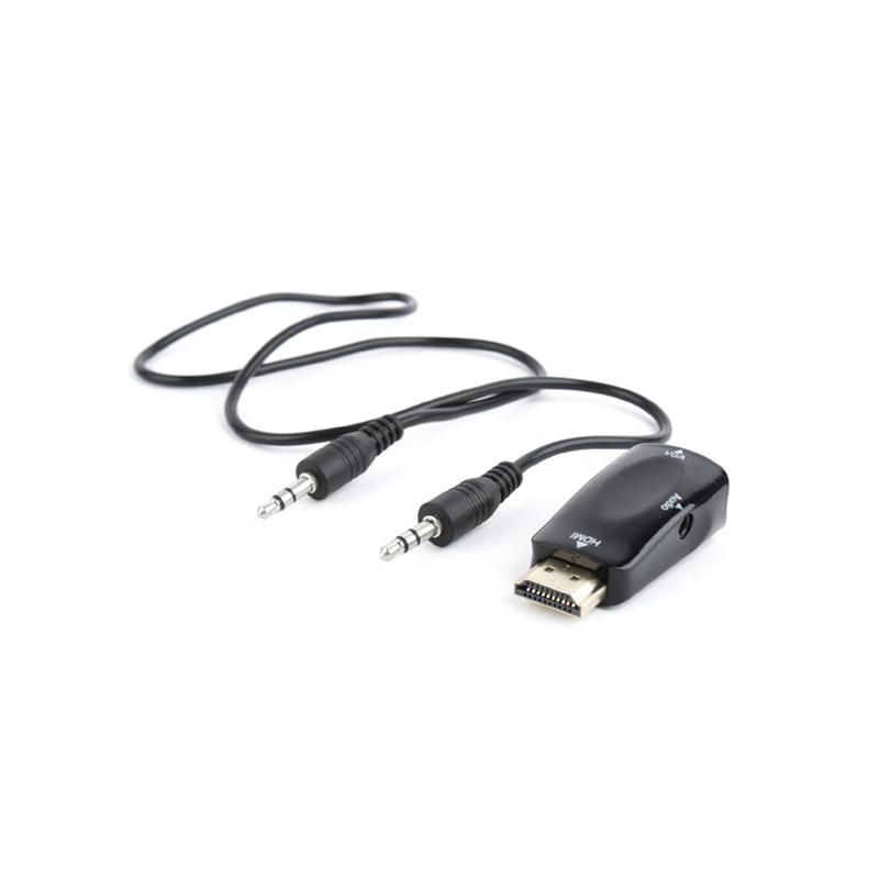 Kompakten adapter HDMI na VGA, ki pretvori digitalni vhod HDMI v analogni VGA izhod + 3,5 mm zvok. Podpira široke pasovne širine do 1920 x 1080 pri 60 Hz, združljiv s HDMI v.1.4. Ločljivost vhodnega in izhodnega video signala je enaka.