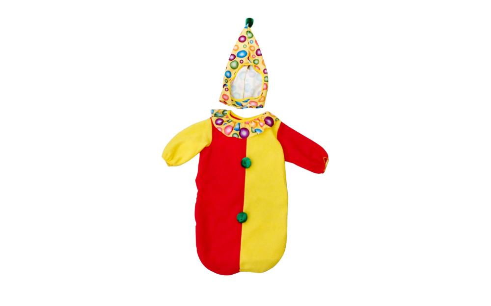 Kostum klovn za najmlajše vsebuje kostum in kapico. Za otroke do 9. meseca starosti.
