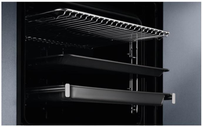 SteamBake omogoča, da doma samo z dotikom tipke ustvarite rezultate kot pri peku. Vlaga omogoča, da testo povsem vzhaja, zaradi česar se ustvarijo slastne mehke sredice, medtem ko suha toplota ustvari bogato, bleščečo skorjo. Uživajte v slastnih pečenih jedeh, kot tudi pečenem piščancu in hrustljavi ribi. Zahvaljujoč našemu tipalu za jedi lahko vsakokrat dosežete popolne rezultate. Omogoča vam nadzorovati postopek pečenja z merjenjem temperature jedra hrane. Opomni vas celo, ko se hrana speče na želeno temperaturo, in ustavi pečenje. Ohranjanje pečice kot nove ni težko z našo pametno funkcijo pirolitičnega čiščenja. Ta sistem samodejnega čiščenja segreje pečico do temperature, ki spremeni ostanke maščobe in druge ostanke v pepel. To pomeni, da morate dno samo obrisati. Niti enega dneva več ne boste porabili za drgnjenje.