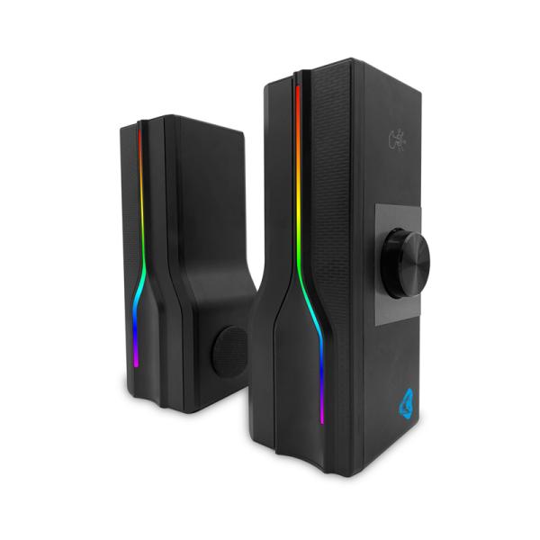Gaming zvočniki z Bluetooth COBRA PRO ARAGOR 2.0 MT3175 je komplet stereo zvočnikov z RMS izhodno močjo 8 W. Zagotavljajo popolno avdiovizualno izkušnjo, saj bodo zvočniki, osvetljeni z RGB LED diodami, oddajali svetlobo različnih barvah. Zvočniki svetijo v fiksnih barvah ali v spremenljivem "mavričnem" načinu. Glede na vaše želje jih lahko nastavite kot zvočnike 2.0 (ločeno) ali jih združite v soundbar. Active Bluetooth 5.0 vam omogoča poslušanje glasbe, poslane brezžično iz naprave, ki podpira Bluetooth (npr. telefon, pametni telefon, tablica) naravnost v zvočnike.