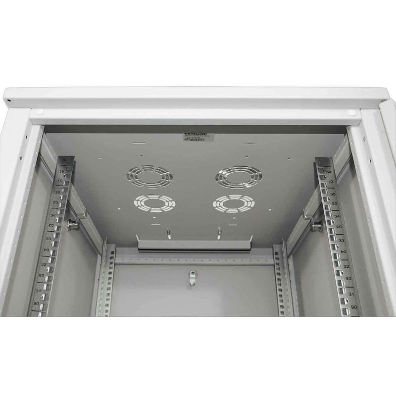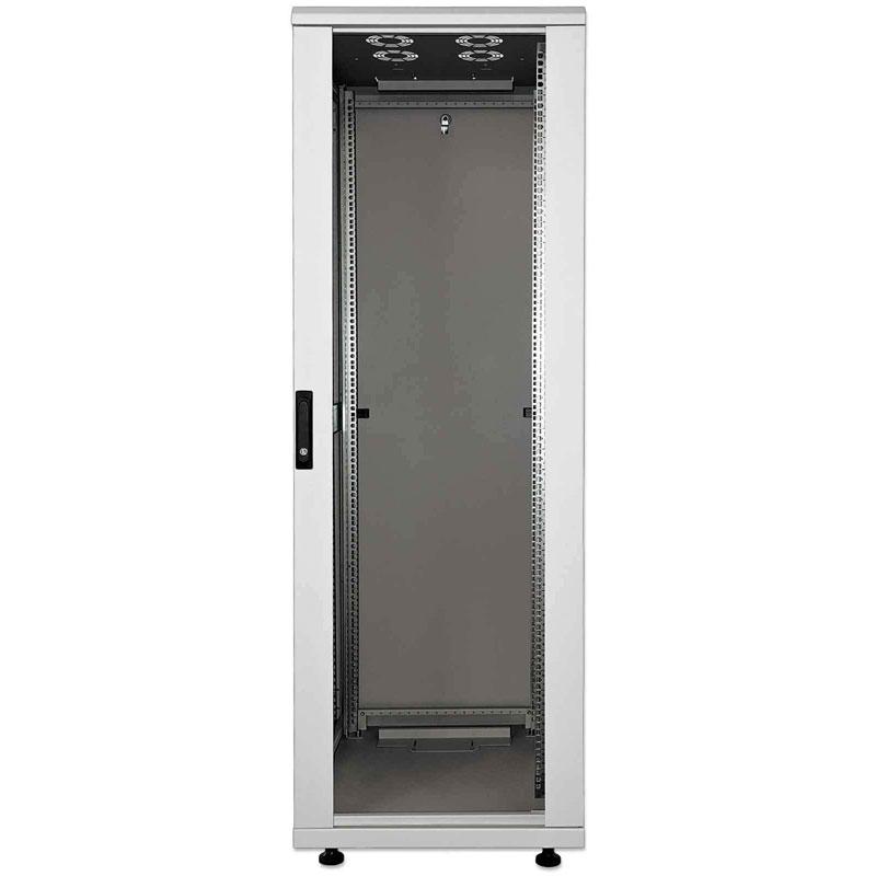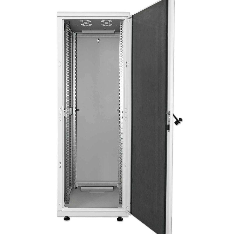 INTELLINET Standard samostoječa komunikacijska omara nudi fleksibilno in celovito rešitev za vaše mrežne namestitve. Omara je dobavljena razstavljena, zato pri transportu prihranite pri prostoru in stroš kih. Snemljive stranske plošče in vrata iz kaljenega stekla, ki jih je mogoče zakleniti, še posebej olajšajo urejanje kablov in menjavo komponent.