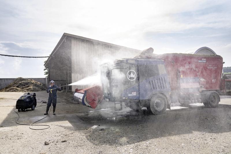 90. obletnica Kärcherja: po zaslugi varčnega načina eco!efficiency, optimiziranega inženiringa gorilnikov, visokotlačne cevi z dolgo življenjsko dobo in dveh rezervoarjev za detergent z natančnim doziranjem, visokotlačni čistilnik HDS 11/18-4 S s toplo vodo v črni barvi proizvajalca Kärcher navdušuje z visoko stopnjo varčnosti in odličnimi rezultati čiščenja. Za največjo zanesljivost pri vsakodnevnem delovanju ima osnovna enota v super razredu visokokakovostne komponente, kot sta vodno hlajen nizkohitrostni 4-polni električni motor in robustna 3-batna aksialna črpalka s keramičnim batom. Prefinjena ergonomija in prijaznost HDS 11/18-4 S se odražata na primer v energijsko varčnem sistemu EASY! Pištola Force Advanced HP s sprožilcem s 1050 milimetrov dolgo brizgalno cevjo, servo krmiljenjem in patentirano tehnologijo šob ali pametnim konceptom mobilnosti za udoben transport stroja. Zahvaljujoč preizkušeni varnostni tehnologiji z vodnim filtrom, varnostnim ventilom, cevjo SDS in možnostmi odstranjevanja vodnega kamna so komponente tudi učinkovito zaščitene, kar zagotavlja visoko razpoložljivost in dolgo življenjsko dobo stroja.
