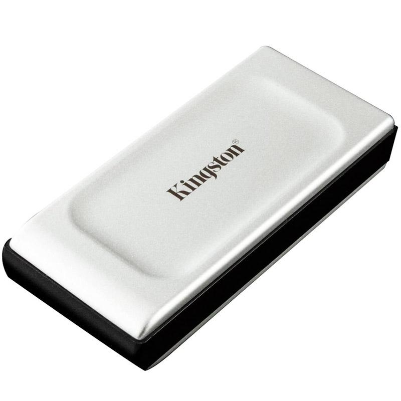 Kingstonov prenosni SSD XS2000 uporablja hitrost USB 3.2 Gen 2x2, za zagotavljanje zmogljivosti naslednje generacije v kompaktnem zunanjem pogonu. Z bliskovito hitrostjo prenosa do 2.000 MB/s1 XS2000 prinaša povečano produktivnost z majhnimi prekinitvami. XS2000 ponuja možnosti hitrega shranjevanja za pretovarjanje in urejanje slik z visoko ločljivostjo, 8K videoposnetkov in velikih dokumentov. Pogon je odporen na prihodnost in je skladen z zahtevami po shranjevanju in je združljiv z večino naprav. Povezuje se z USB Type-C, ki ustvarjalcem vsebin omogoča dostop do njihovih podatkov kjer koli v računalniku ali mobilni napravi. XS2000 vključuje odstranljivo robustno zašč ito in stopnjo zaščite IP55, da vzdrži vodo in prah, zaradi česar je popoln spremljevalec za fotografiranje ali pustolovščine na lokaciji.