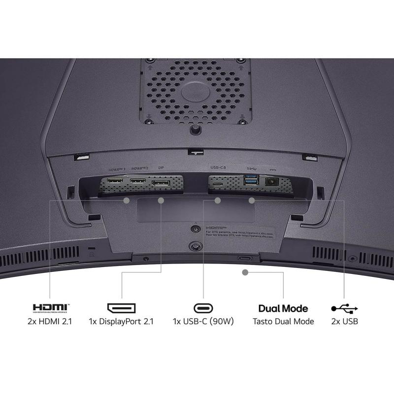 LG 45GX950A-B.AEU je vrhunski 45-palcni ukrivljeni OLED UltraGear monitor, ki združuje izjemno ločljivost, hitro odzivnost in prilagodljivo osvezevanje za popolno igralno in multimedijsko izkusnjo. Z 5K2K ločljivostjo (5120 x 2160) ponuja ogromno delovne povrsine in natančne podrobnosti, medtem ko tehnologija Dual Mode omogoča prilagoditev hitrosti osvezevanja – 165 Hz za visoko ločljivost ali 330 Hz pri nizji ločljivosti za izjemno gladko igranje. Ukrivljeni OLED zaslon z izjemnim kontrastom, globokimi crnimi toni in HDR True Black prinaša zivahne barve in realistiske vizualne podrobnosti, kar izboljsa tako igranje kot gledanje filmov. Napredna povezljivost, vključno z DisplayPort 2.1, HDMI 2.1, USB-C s prenosom slike in napajanjem do 90 W, ter integriran USB hub omogoča enostavno povezovanje naprav in polnjenje prenosnikov. Ergonomsko stojalo s prilagoditvijo visine in nagiba ter ukrivljen dizajn zaslona zagotavljata udobje pri dolgotrajni uporabi. LG 45GX950A-B.AEU združuje vrhunsko tehnologijo, fleksibilnost in eleganten dizajn, zaradi cesar je popolna izbira za igralce, ustvarjalce vsebin in vse, ki zelijo en monitor za delo, igre in zabavo brez kompromisov.