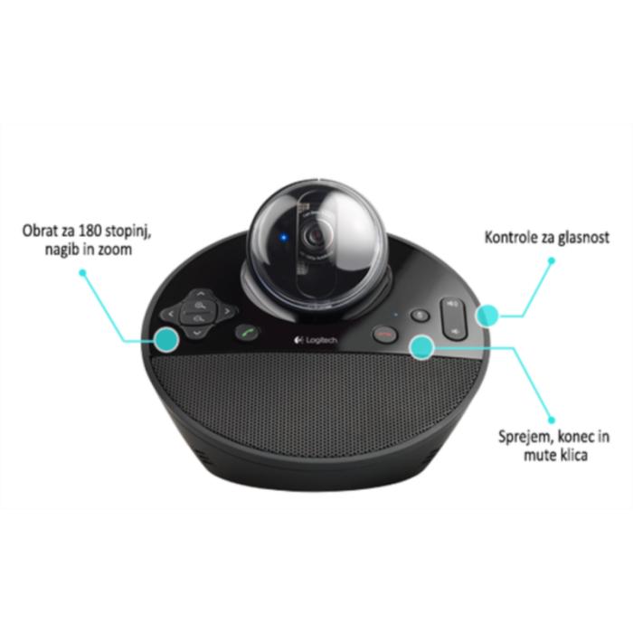 Konferenčna kamera Logitech ConferenceCam BCC950 omogoča majhnim skupinam, da naredijo svojo konfernco kadarkoli in kjerkoli. BCC950 video sistem je s svojo visoko ločljivostjo, "priklopi in že deluje" spletno kamero in zvočnikom/mikrofonom idealen za majhne sobe in skupine. Postavite ga hitro in enostavno na pisarniško ali konferenčno mizo. HD video in kristalen zvok združujeta visoko kvaliteto z privlačno ceno.
