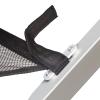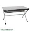 Patentirana miza iz aluminija z enostavno zložljivim okvirjem. Odlikuje jo mrežasti prostor za odlaganje. Stabilen okvir iz kvadratnih aluminijastih cevi z nastavitvijo višine. Mere (d/š/v): 122 x 76 x 72 cm, zložena 122 x 18 x 17 cm, nosilnost do 30 kg, teža 7.1 kg.