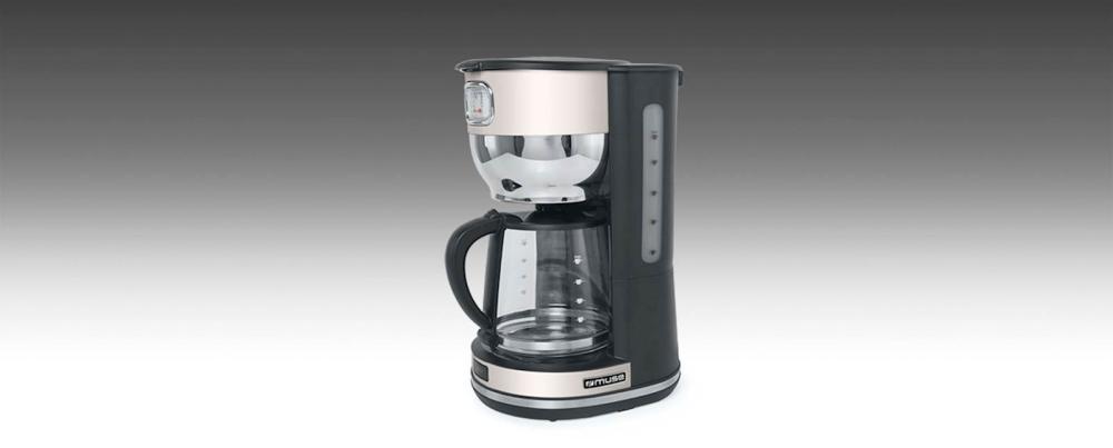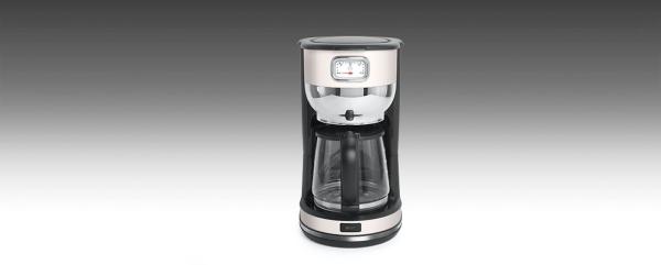 Aparat za kavo z indikatorjem nivoja vode. Ima funkcijo samodejnega izklopa, osvetljeno stikalo, snemljivo držalo, stekleni lonček za kavo. Prostornina rezervoarja za vodo je 1.4L (10 skodelic). Moč 1000W.