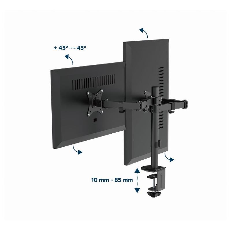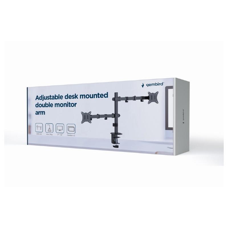 Jekleni mizni nosilec za dva LCD monitorja Gembird MA-D2-03, primeren za zaslone od 17″ do 32″.