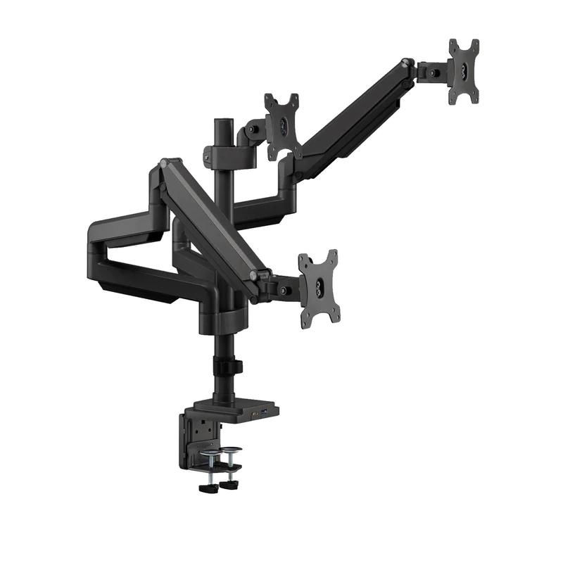 Namizni črni nosilec ErgoOffice ER-408B za tri LCD monitorje od 17" do 32". Skupne nosilnosti 21 kg.