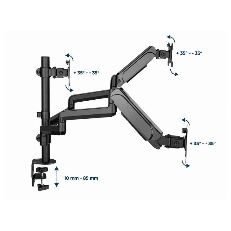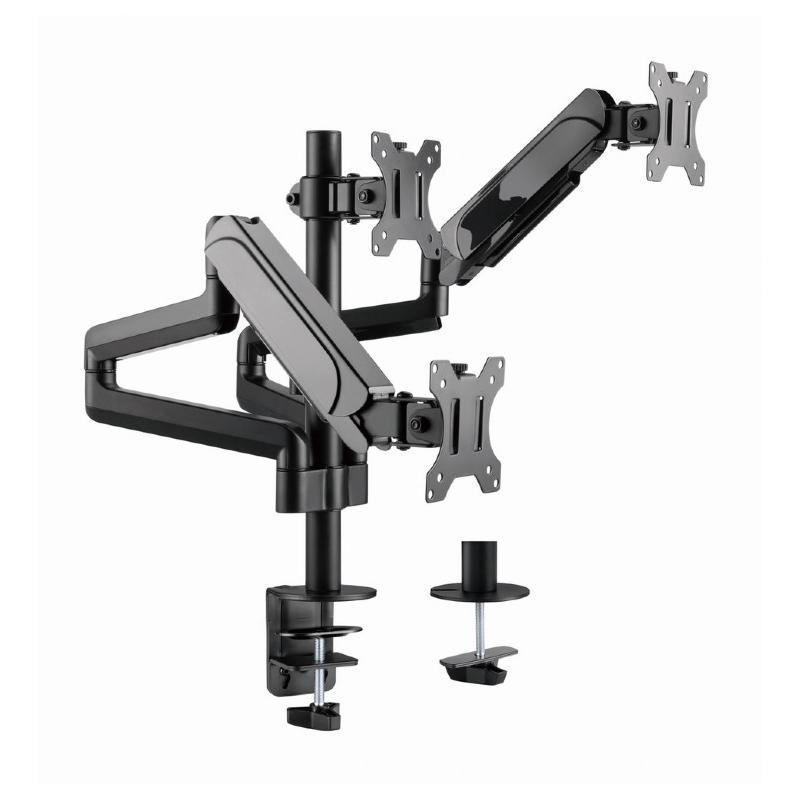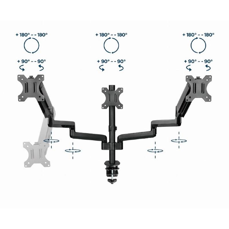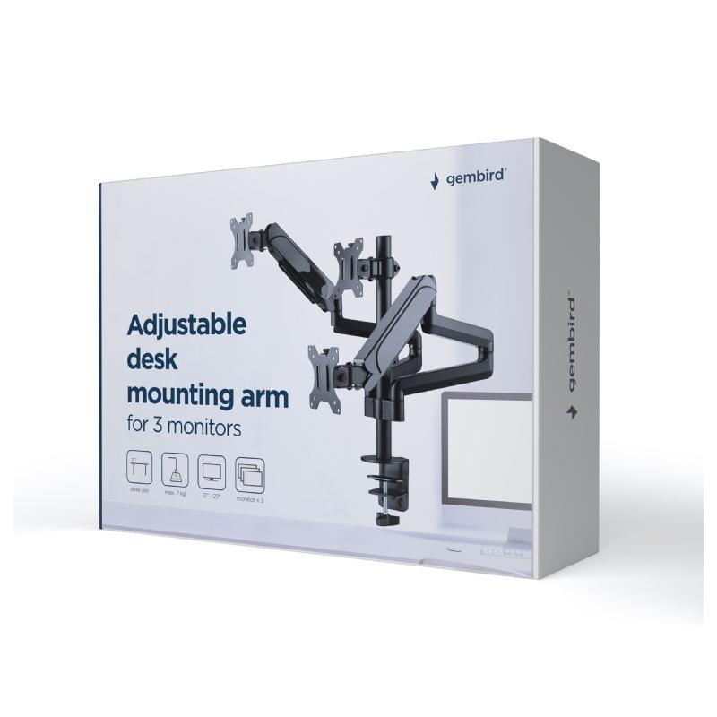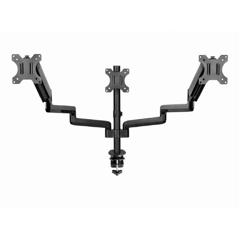 Jekleni mizni nosilec za tri LCD monitorje Gembird MA-DA3-01, primeren za zaslone od 17″ do 27″.