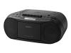 Predvajalnik CFD-S70 odlikujeta izjemen zvok in kompaktna zasnova. Privlačna enota ima radio AM/FM, kasetnik in CD-predvajalnik z možnostjo predvajanja skladb mp3. Uživajte v bogatem zvoku s funkcijo Mega Bass in prednastavite do 30 radijskih postaj s tremi najljubšimi na dotik. Nastavite izklopni časovnik, da samodejno izklopite radio, ko je čas za spanec.