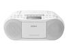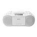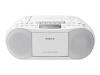 Predvajalnik CFD-S70 odlikujeta izjemen zvok in kompaktna zasnova. Privlačna enota ima radio AM/FM, kasetnik in CD-predvajalnik z možnostjo predvajanja skladb mp3. Uživajte v bogatem zvoku s funkcijo Mega Bass in prednastavite do 30 radijskih postaj s tremi najljubšimi na dotik. Nastavite izklopni časovnik, da samodejno izklopite radio, ko je čas za spanec.
