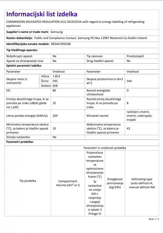 - Zmogljivost zamrzovanja: 8 kg/24h