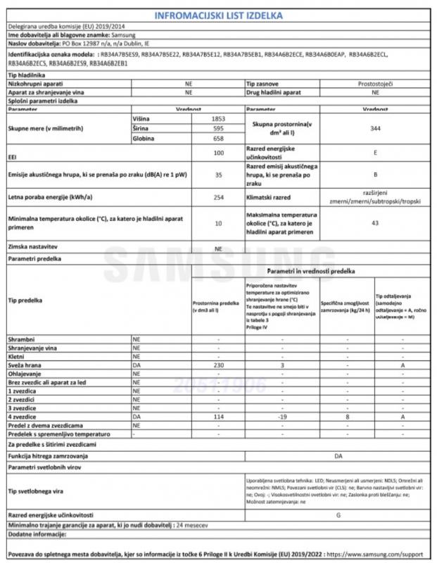 - Poraba energije (kWh/leto): 254