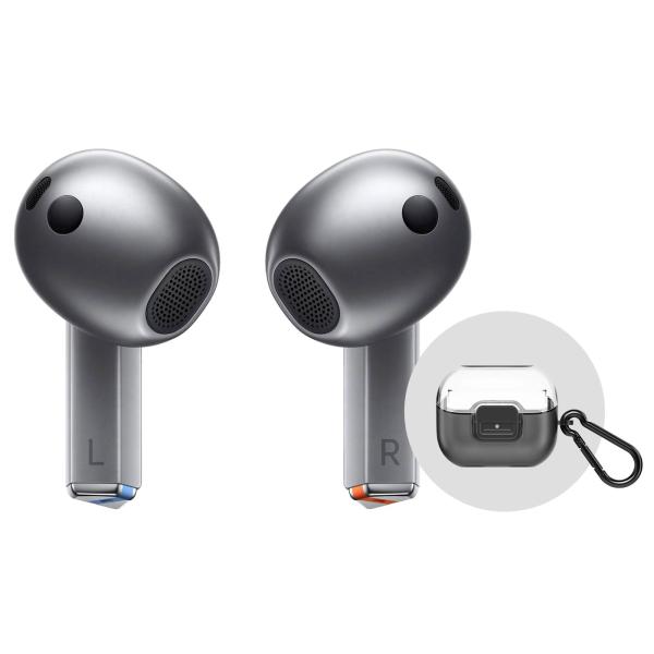 Galaxy Buds3 serija, zasnovana na podlagi številnih zbranih statističnih podatkov, prinaša nov, računalniško modelirano oblikovanje za izjemno udobno nošenje. Galaxy Buds3 so idealne za uporabnike, ki želijo slušalke uporabljati v različnih okoljih in dlje časa. Dodana Galaxy Buds3 škatlica s karabin zaponko.