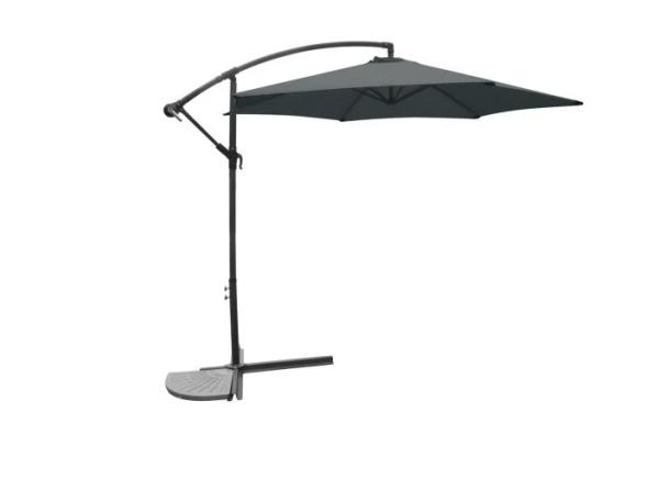 Aluminijasto ogrodje antracit barve, z navojno ročico za odpiranje, z zračnikom in s kovinskim podstavkom, nosilec 48 mm, 8 reber, poliester 180 gr/m2. UV 50+