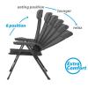 Ogrodje iz kvalitetnega in vzdržljivega iz aluminija, zračen in trpežen tekstil Sytnex Plus, ki je enostaven za vzdrževanje, 6-pozicijski prilagodljiv hrbtni naslon za izjemno udobnost. V zložljenem stanju kompakten, enostaven za shranjevanje in prenašanje. Mere (š/g/v): 46 x 41,5 x 44,5/118 cm, razstavljen 101 x 59 x 13 cm, teža 4.18 kg nosilnost do 120kg, antracit barve.