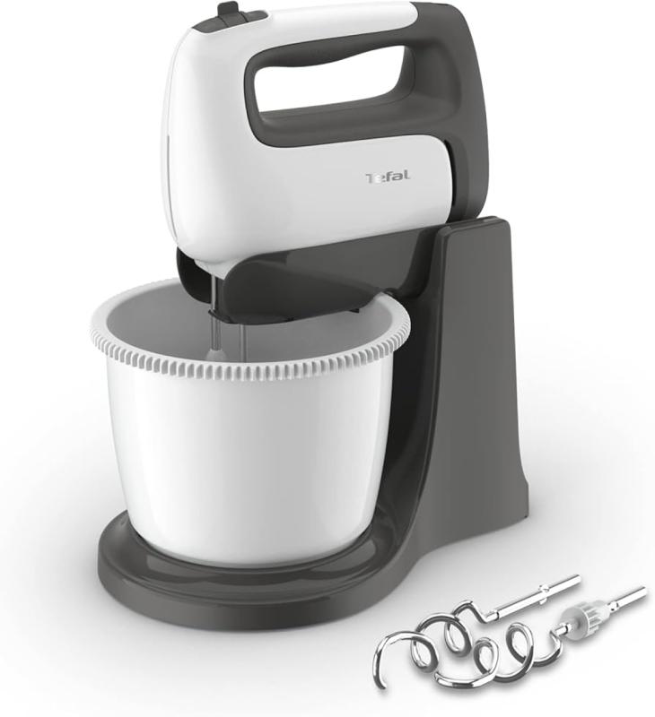 Ročni mešalnik Tefal ima robustne zmogljivosti za vse vaše potrebe po peki in enostavno skrbi za lahke in goste mešanice.