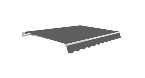 Aluminijast okvir bele barve, prašno barvan, z jekleno ročico za ročno upravljanje, tkanina iz poliestra 280g/m2 s PU premazom in UV 50+ zaščito, prilagodljiv naklon do 45°, montaža na steno ali strop.