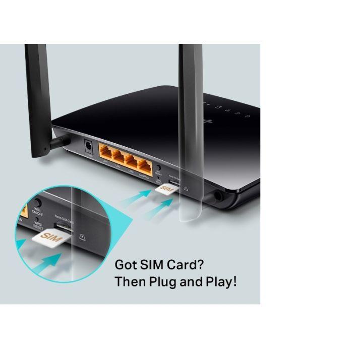 Brezžični usmerjevalnik TP-LINK Archer MR400 je usmerjevalnik, ki poleg najnovejših Wi-Fi standardov (802.11ac) za višje brezžične hitrosti ponuja še podporo za SIM kartice in s tem telefonsko omrežje. Z visoko učinkovitostjo in robustno varnostjo je odlična izbira za nadgradnjo domačega omrežja. S simultano uporabo dveh frekvenc ima uporabnik do 1200Mbps pasovne širine in nemoteno uporabo spletnih storitev, pošte ter obenem igranje spletnih iger ali pretakanje zahtevnega videa brez zamikov na drugem frekvenčnem območju.