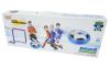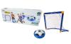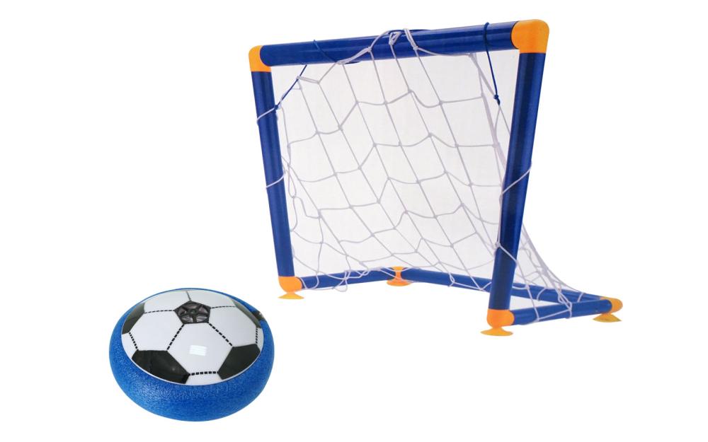 Set vsebuje gol z mrežo in baterijsko žogo premera FI 14 cm, ki jo vključite s premikom gumba on/off na pozicijo on, ki se nahaja na spodnji strani žoge. Zasvetile se bodo utripajoče barvne luči, žoga se bo pričela premikati sama od sebe. Njeno gibanje pospešite tako, da jo potisnete z nogo. Žogo uporabljajte na gladkih, ravnih površinah. Za delovanje potrebuje 3 baterije tipa AA 1.5 V - baterije niso priložene. Palice gola in spojke so iz PVC materiala. Dimenzije gola so: dolžina 50 cm, širina 26 cm ter višina 38 cm.