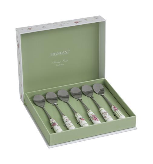 Brandani Set čajne žličke Nonna Rosa 14cm / 6 kos / inox, keramika