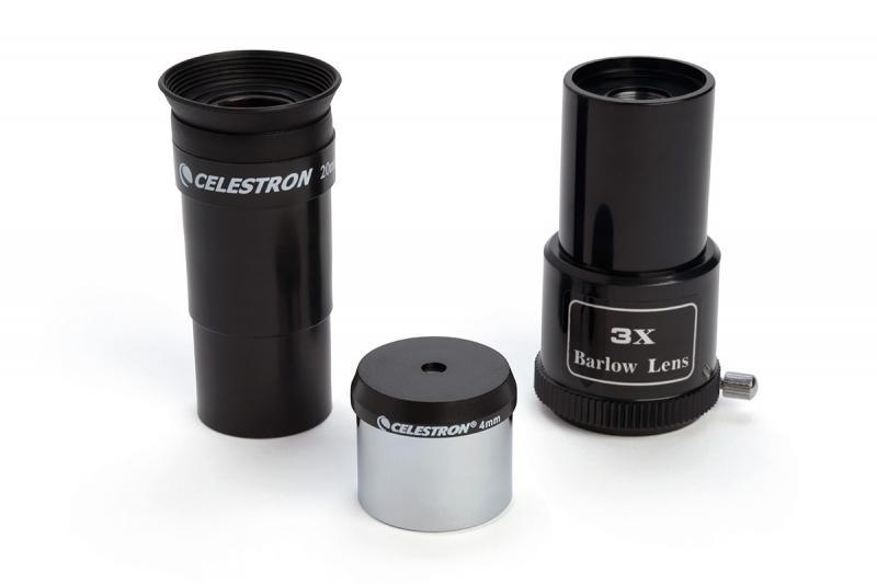 Vsi Celestron PowerSeekers so opremljeni s celotnim kompletom okularjev in 3-kratnim Barlowovim objektivom, kar vam omogoča več kot 100-kratno povečavo.