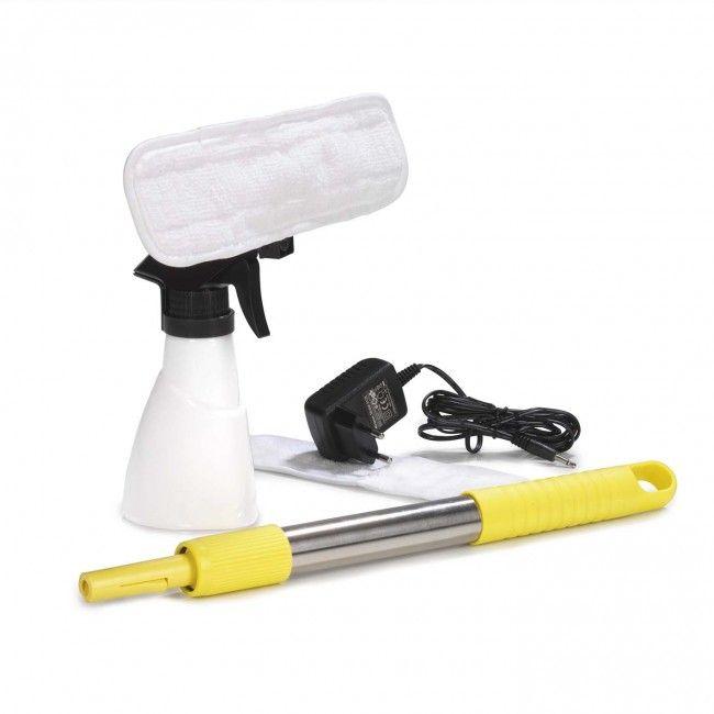 Teleskopski drog je vključen v komplet za visoka okna, tako da lahko tudi v teh problematičnih okoliščinah zagotovite čistočo brez črt v vogalih. Naknadno čiščenje akumulatorskega čistilnika oken CLEANmaxx 02304 je kot otroška igra in deluje samo s pritiskom na gumb!