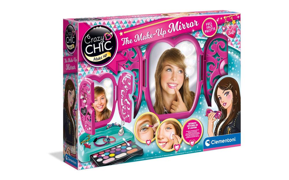 Podoživite življenje super zvezdnice pred velikim nastopom. Ličila, ogledalce in lučke vas popeljejo v svet visoke mode, kjer bodo vsi žarometi usmerjeni vate. Ogledalo je prikupne roza barve in ima vratca za odpiranje in zapiranje. Vsebuje tudi podstavek, na katerega ogledalo fiksirate. Za izjemen videz pa poskrbi paleta za ličenje s čudovitimi barvami. Potrebuješ samo še čas, potrpljenje ter vajo. Crazy Chic make up ogledalo vsebuje led lučke, ki delujejo na baterije.