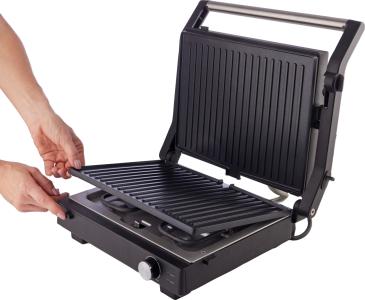Prevleka proti prijemanju - Olajša peko in čiščenje, Vsestranske možnosti nastavitev - Zaprt ali popolnoma odprt žar, Odstranljive ploščice z neprijemljivo površino - Peka z malo maščobe in enostavno čiščenje