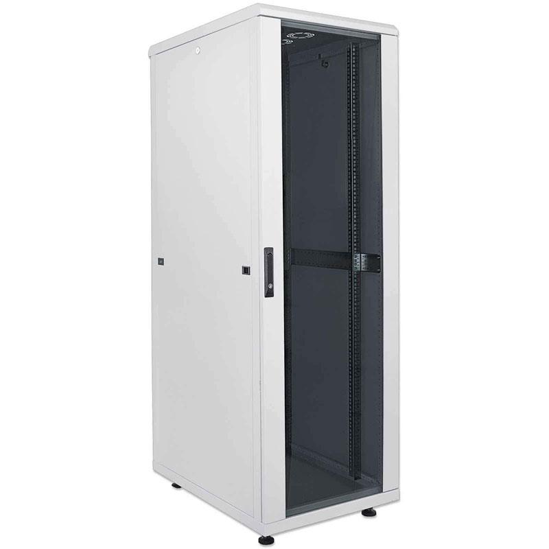 INTELLINET Standard samostoječa komunikacijska omara nudi fleksibilno in celovito rešitev za vaše mrežne namestitve. Omara je dobavljena razstavljena, zato pri transportu prihranite pri prostoru in stroš kih. Snemljive stranske plošče in vrata iz kaljenega stekla, ki jih je mogoče zakleniti, še posebej olajšajo urejanje kablov in menjavo komponent.