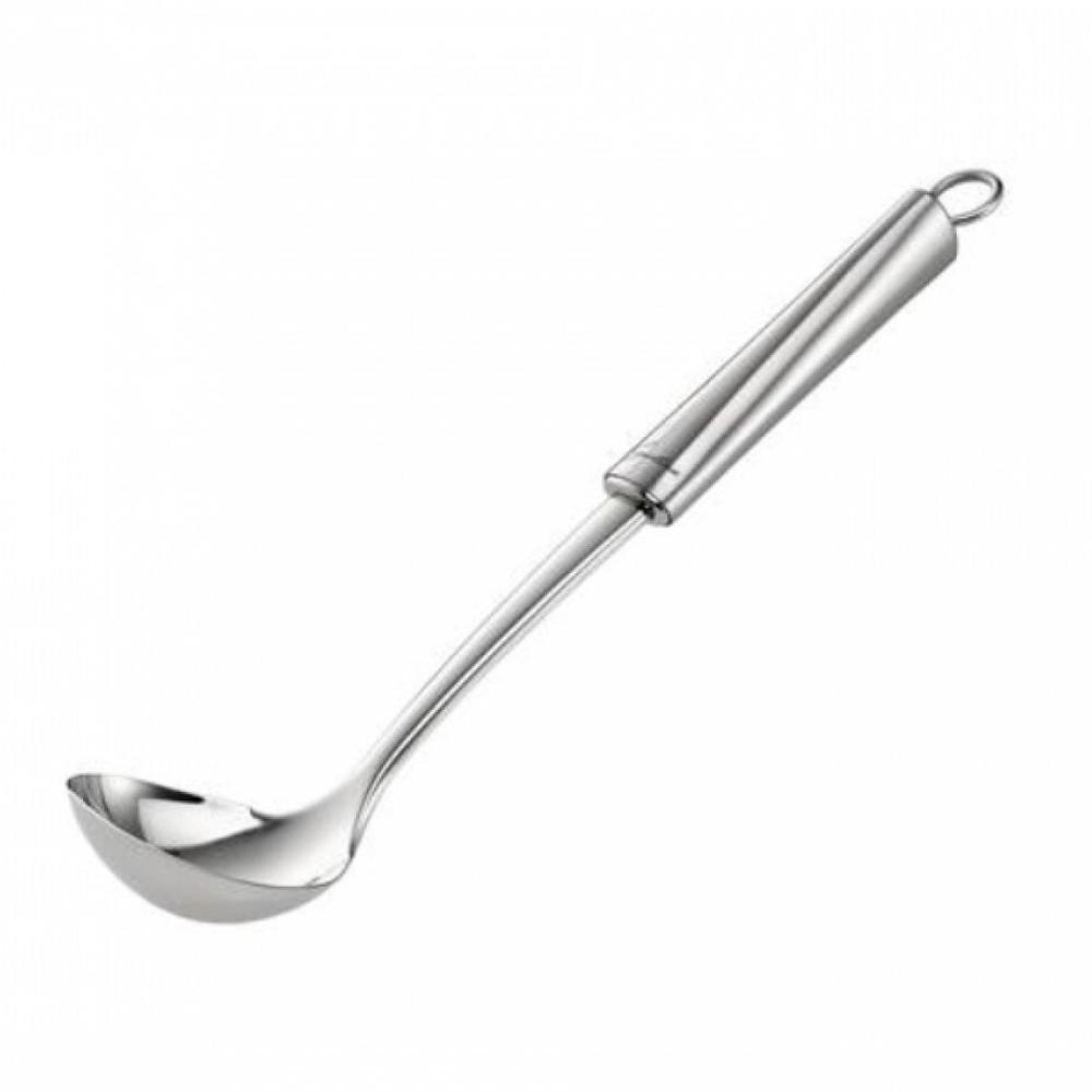 ZAJEMALKA z dolžino 29,5 cm, italijanske blagovne znamke Lagostina iz edinstvene in praktične serije Cucinieri je odličen kuhinjski pripomoček, ki ne sme manjkati v nobeni kuhinji. Primerna je za točenje juh, enolončnic ter omak. Izdelana je iz visoko kakovostnega nerjavečega jekla 18/10, za katerega je značilna visoka obstojnost, odpornost proti koroziji in živilskim kislinam. Ergonomski ročaj zagotavlja udobje med uporabo. Praktična odprtina na koncu držala pa omogoča, da po uporabi zajemalko obesite na kavelj. Lahko jo pomijete v pomivalnem stroju.