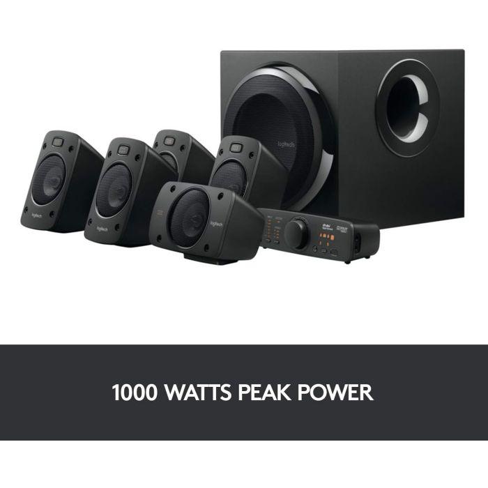 Odlični, brutalno močni 5.1 računalniški zvočniški sistem s THX certifikatom, ki vam omogoča, da slišite vsak detajl vse okoli vas v igrah, glasbi in filmih. Poleg 5 satelitov in nizkotonca sta tu konzola za nadzor glasnosti na vseh zvočnikih, nastavljanej vhodov in še več. Priložen pa je tudi brezžični daljinec, da vam ne bo potrebno zapustiti udobnega kavča ali postelje. Omogoča dekodiranje Dolby Digital 5.1, zočniki pa pretvorijo dvokanalni stereo zvok v obkožijoči zvok! Satelite lahko tudi namestite na zid in sobo spremenite v pravi domači kino.