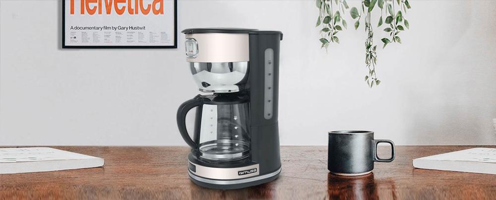Aparat za kavo z indikatorjem nivoja vode. Ima funkcijo samodejnega izklopa, osvetljeno stikalo, snemljivo držalo, stekleni lonček za kavo. Prostornina rezervoarja za vodo je 1.4L (10 skodelic). Moč 1000W.