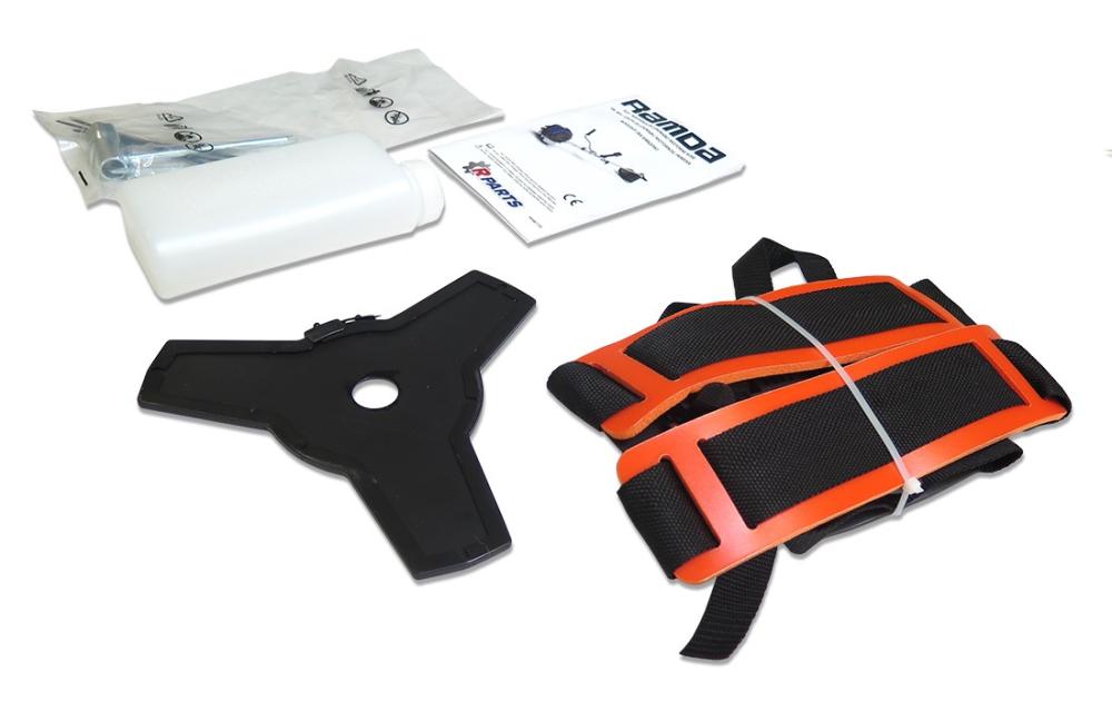 Motorna kosa RAMDA polprofesionalna z krivo deljivo gredjo in okroglim ročajem.