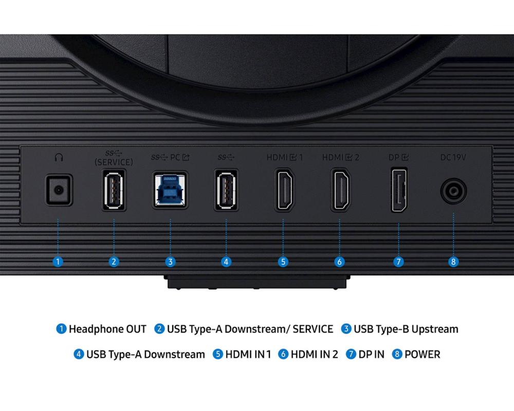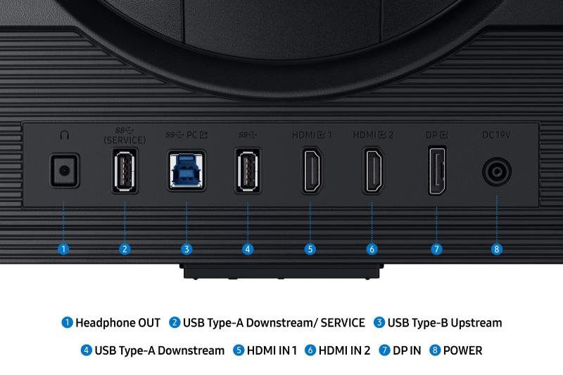 - Priklop: DisplayPort, 2 × HDMI 2.1, USB hub, izhod za slušalke